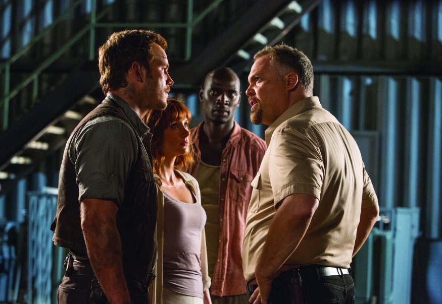 Chris Pratt , Vincent D'Onofrio, Bryce Dallas Howard, Judy Greer, Nick Robinson, Jake Johnson, Lauren Lapkus, Katie McGrath, Irrfan Khan, BD Wong, Ty Simpkins, Eddie J. Fernandez, Brian Tee, Omar Sy, Divine Prince Ty, Inder Kumar, Andy Buckley, Kelly Washington, Fileena Bahris, Gary Weeks, Helene Cardona, Matty Cardarople, Jennifer Rikert Wolski, Justin Lebrun, Eric Edelstein, Chloe Perrin, Wendy Clarice Jordan, Courtney James Clark, Christopher Heskey, Michelle DeVito, James DuMont, Alan D. Purwin, Rob Fuller, Yvonne Angulo. |